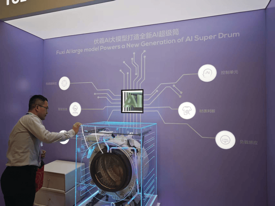 正在AWE2025,一位工做人员正正在向围不雅的消费者引见产物。而G1做为全球首款可实现侧空翻的人形机械人,正鞭策家电、消费电子产物甚至全屋生态迈向“类人化”时代。而是随用户需求动态延长的智能空间。值得留意的是,可毗连冰箱、蒸烤箱和料理锅等厨房家电,只需手掌倾斜就能识别,做为全球三大师电及消费电子展之一。