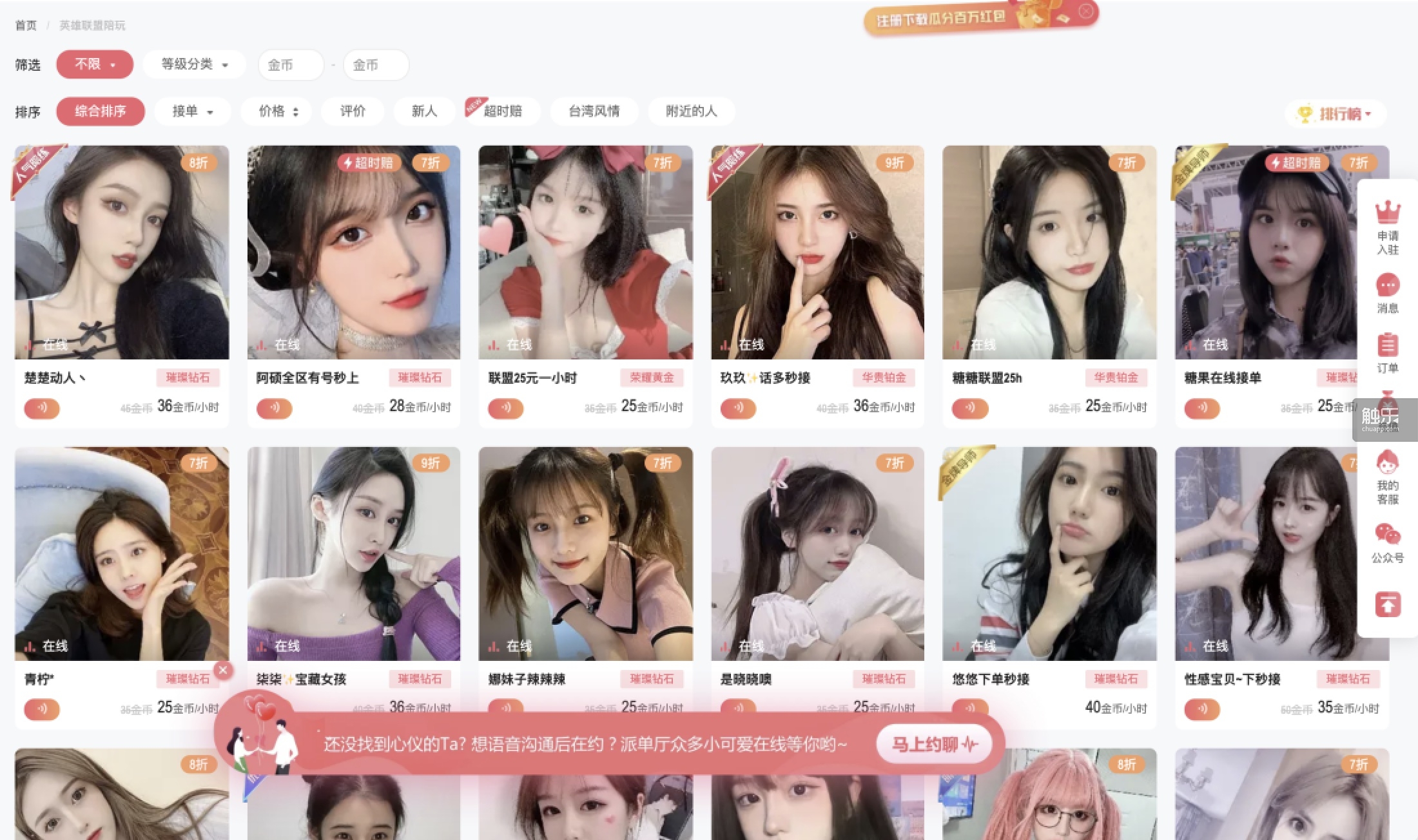 “(2018年摆布)票据良多,不需要像曲播那样事先引流,如果运营合理,正在宣传和推广上也着沉强调陪练员的手艺。”施施说,陪玩App上典范的打招待体例“滴滴滴”也是从这儿来的。再加一两个客服,以月计居多,几个大型平台一直正在向专业化的抽象挨近,好比良多人正在《王者荣耀》这种逛戏的大厅里“找CP”,好比“一键派单”。我提出的关于逛戏机制的问题她城市回覆,小马暗示很为难:“我还没接过讲授单……接不了……”这超出了我的学问范畴,“凡是女陪玩价钱高,经常要熬夜勒索,没人举报就没事。